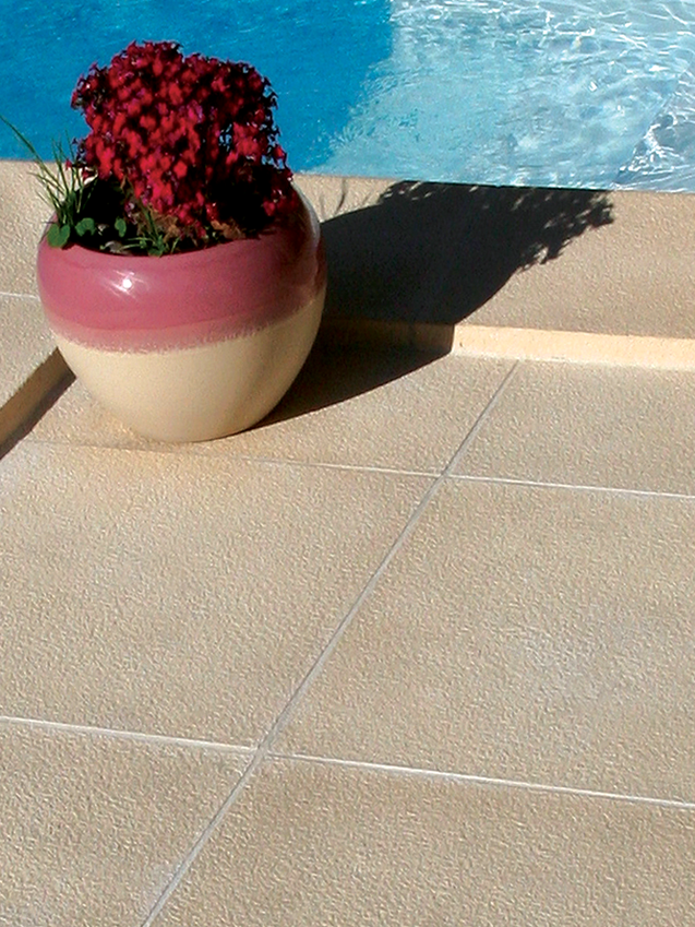 Sobre et d’une extrême douceur le dallage Granitus développe au bord du bassin la sensualité propre aux moments de plaisir.