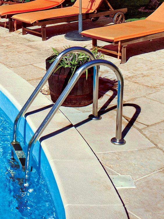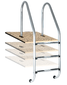 Le système de fixation pour échelle de piscine antidérapante permet de combler un manque lors de l'installation d'une échelle en acier inoxydable sur les bordures de piscine. On a ainsi développé cet accessoire pour notre gamme de dalles de piscine antidérapantes, facilitant l'installation d'une échelle en acier inoxydable pour accéder à la piscine tout en préservant l'harmonie esthétique de la zone pavée.